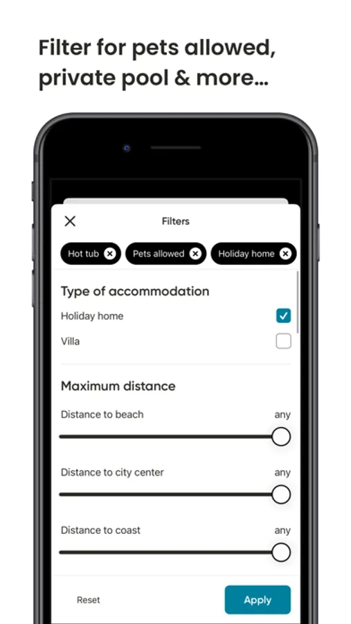 -Filter by specific criteria such as price range, number of bedrooms, distance to the beach, pet-friendliness and much more.