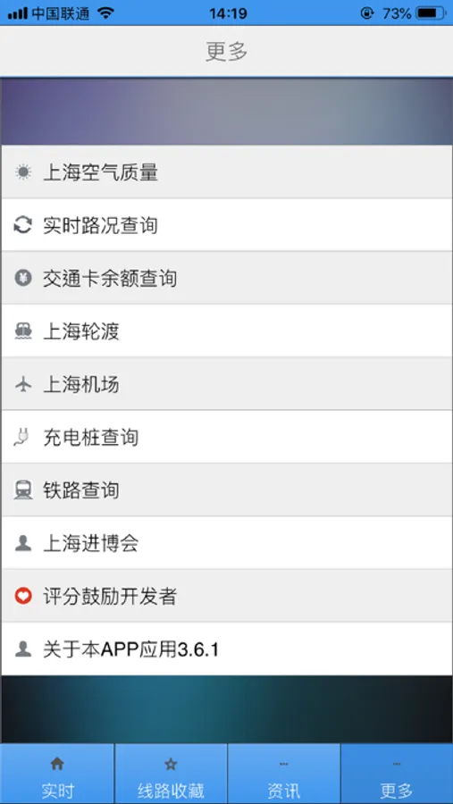 功能介绍:实时到站信息查询,线路收藏,交通卡余额查询,天气信息,空气质量等