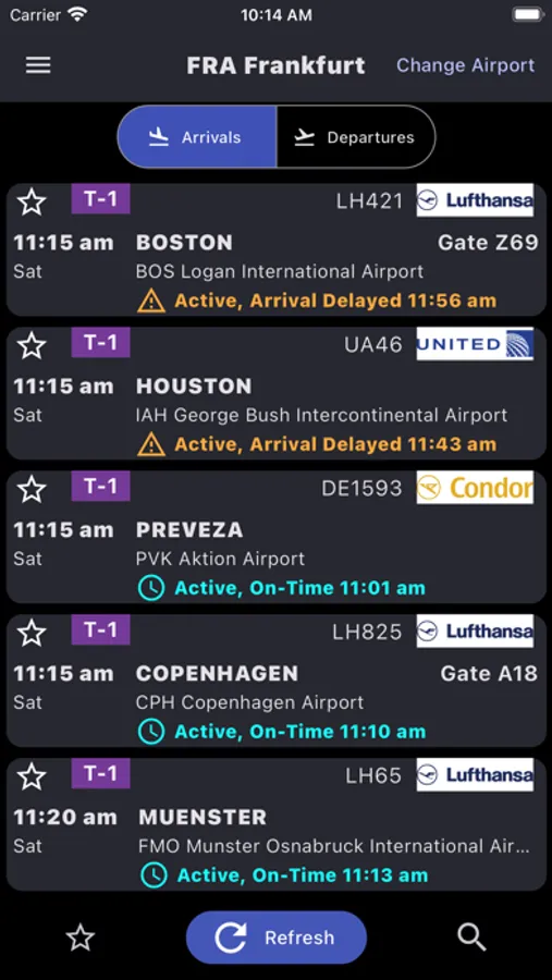 Flight arrivals and departures information for Frankfurt Airport (FRA)