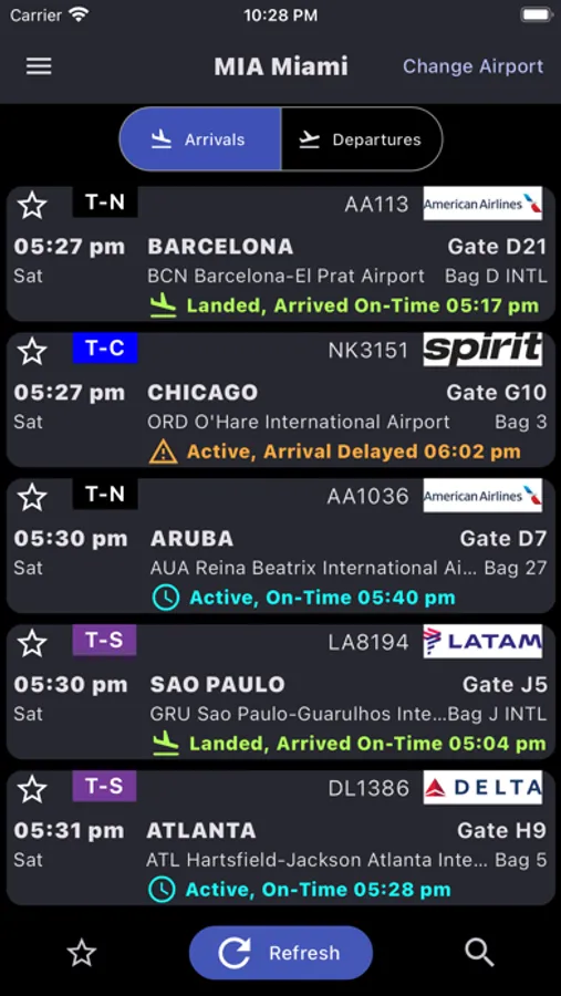 3) Power flight search (search by city, gate, flight number, terminal, baggage area)