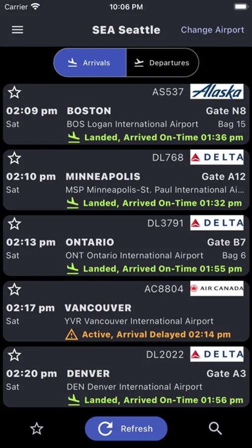 Flight arrivals and departures information for Seattle Tacoma Airport (SEA)