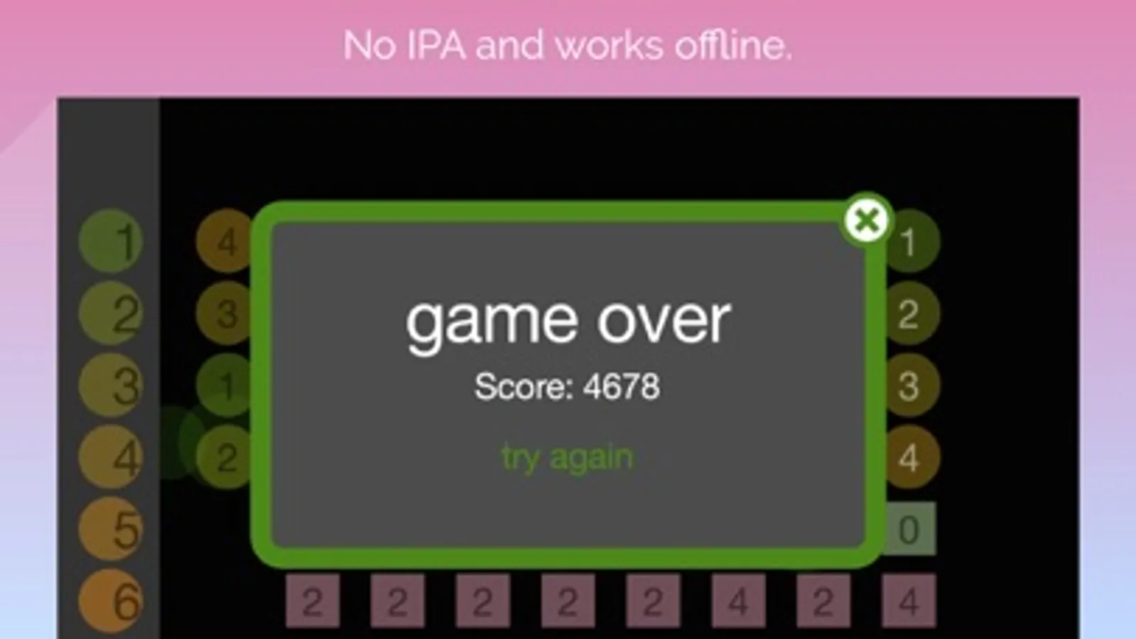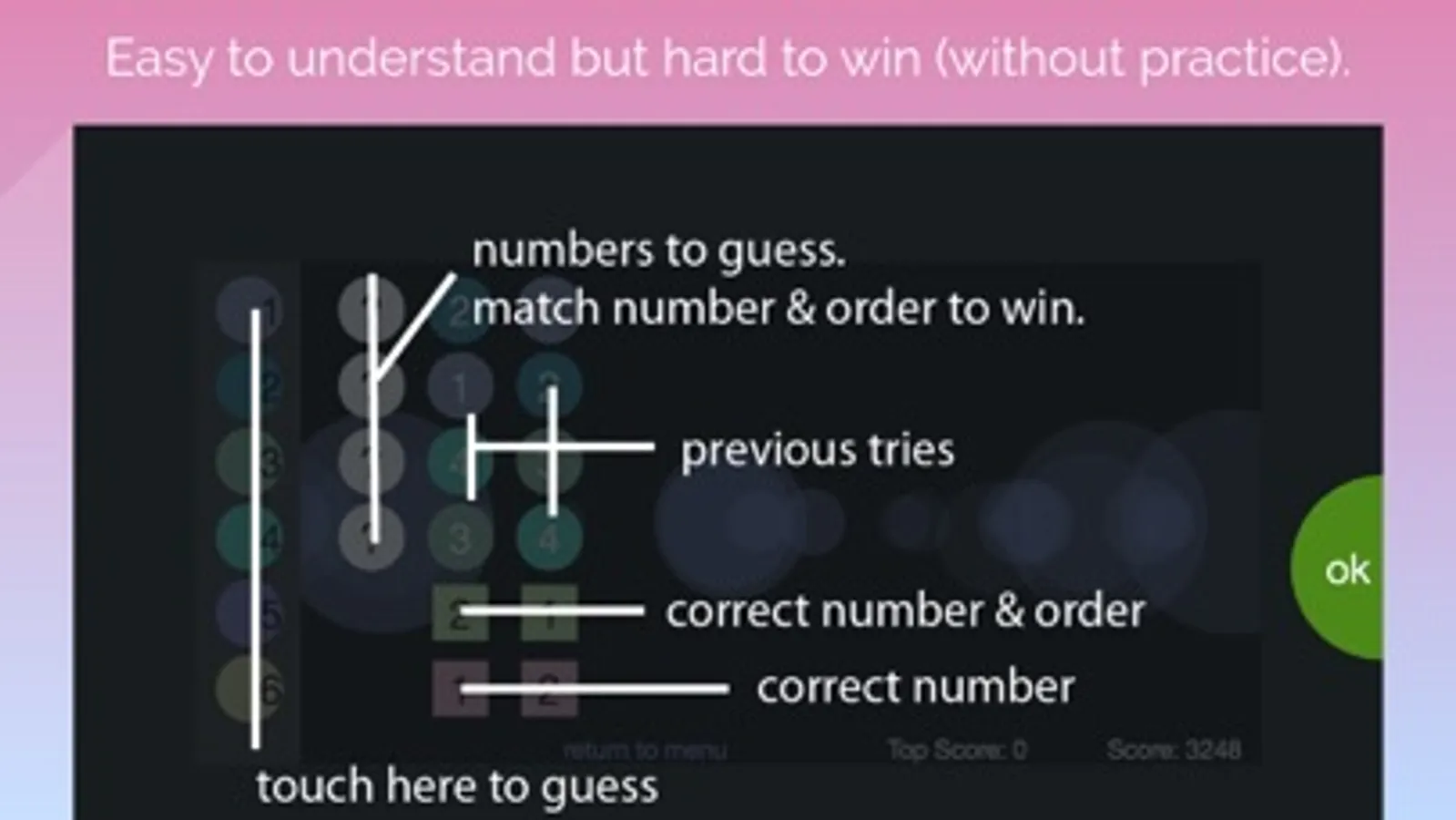 A classic paper and pencil game translated for the phone/tablet screen. Guess the 4 random hidden numbers by trying combinations of 10 numbers.