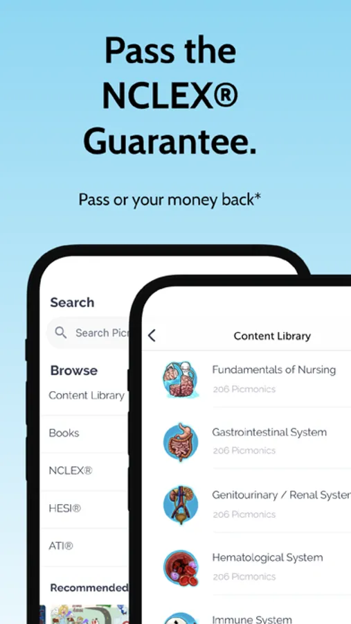 Prepare for nursing school and pass your nursing exams with Picmonic! For FREE you can access to our most popular Videos, Multiple Choice Quiz Questions, and Daily Quiz with Spaced Repetition for 5 days. Get full unlimited access with an affordable subscription.