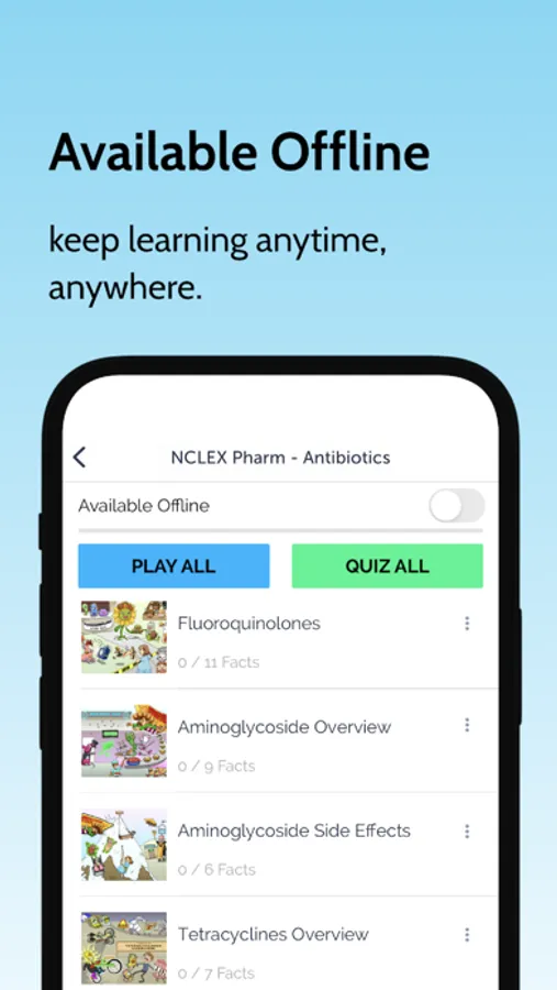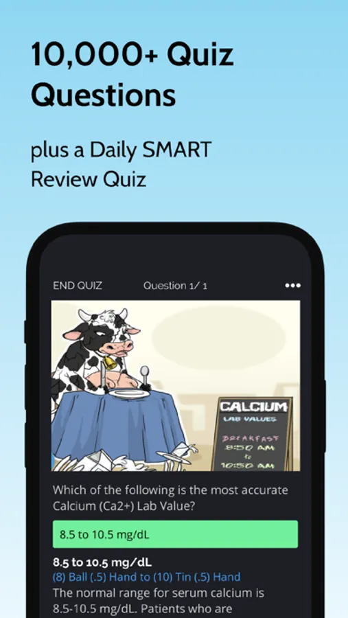 10,000+ quiz & practice questions & 1,000+ entertaining mnemonic videos covering all major topics & subjects. Ditch boring textbook memorization, recall information faster & retain it longer to ace your nursing courses, clinicals & board certification exam with less study time using unforgettable images and stories.