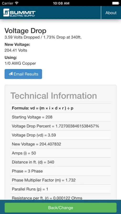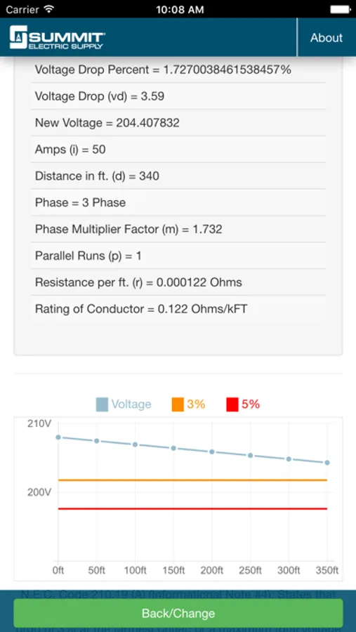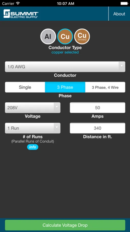Summit's Voltage Drop Calculator allows you to quickly calculate and share voltage drop for a selected conductor size and type based on the 2014 NEC. This simple and easy-to-use calculator delivers professional results for any size job or project. Simply select your conductor then enter your voltage, amperage, phase, distance, and number of runs to determine the new voltage and percentage dropped. You’ll get instant results for each calculation that includes the formula used as well as detailed technical information.