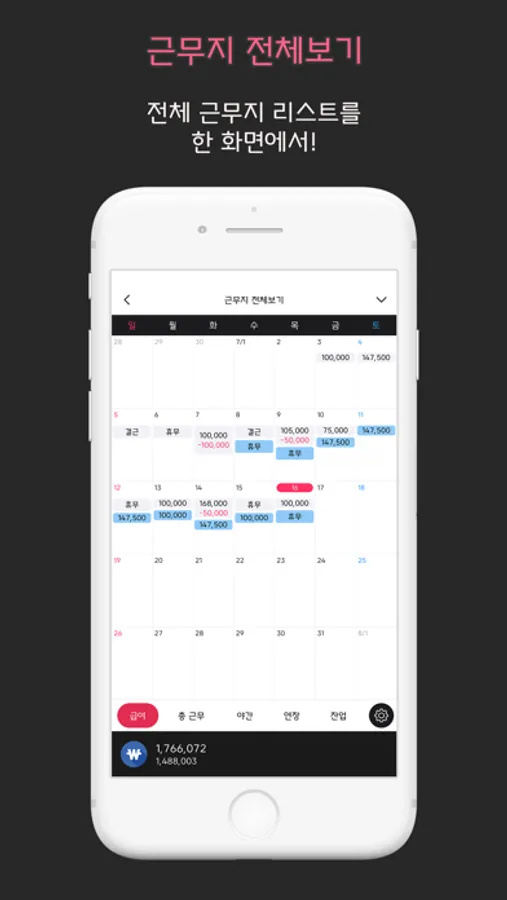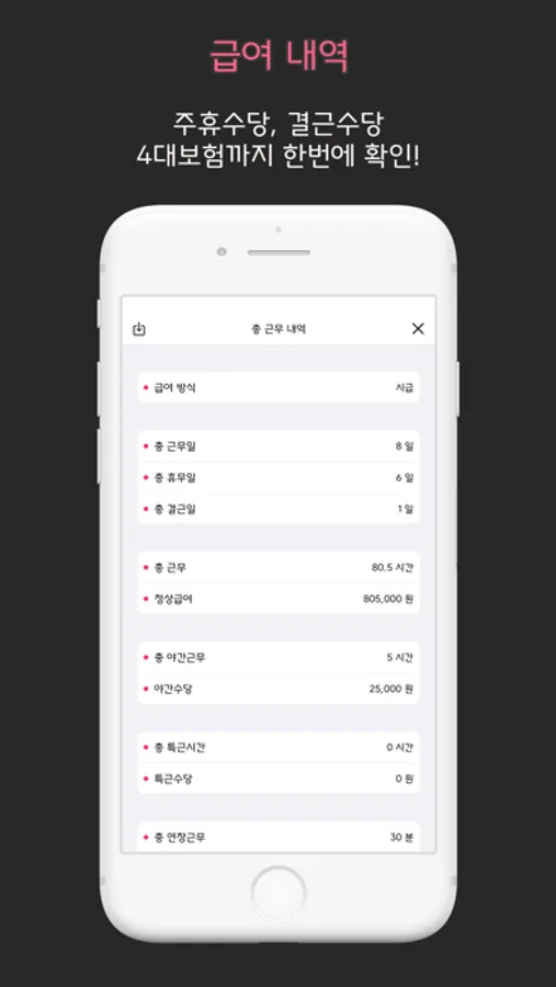 - 주휴, 야간, 특근, 연장, 잔업, 기타수당, 기타금액 등등 상세 근무 설정 가능
