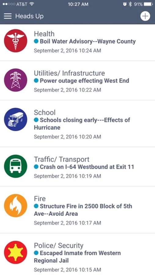 Unified alerts notification system. The app allows users to directly receive important information, via Apple's Push Notification Service, that has been input by trusted delegates from an area's authorized personnel. Ranging from more common scenarios such as accidents on the highway or school closings to severe incidents like the previous "derecho" storm - Heads Up aims to keep the public safer and more informed with live information from trusted sources.
