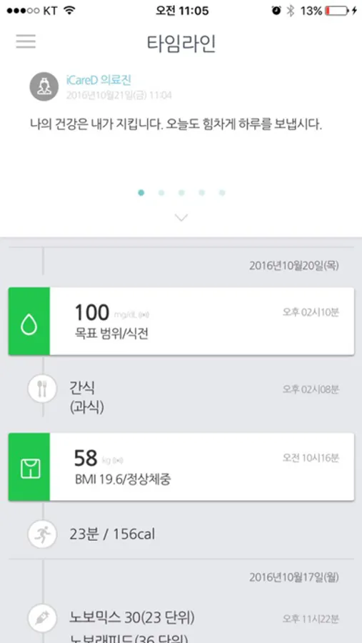 - 타임라인 : 나의 생활습관이 혈당에 어떤 영향을 주는지 흐름을 파악할 수 있습니다.