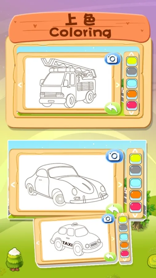 Car coloring: Kids can paint the car according to their favorite and imaginations. They can pick the car and color they like. Then design the car they like.