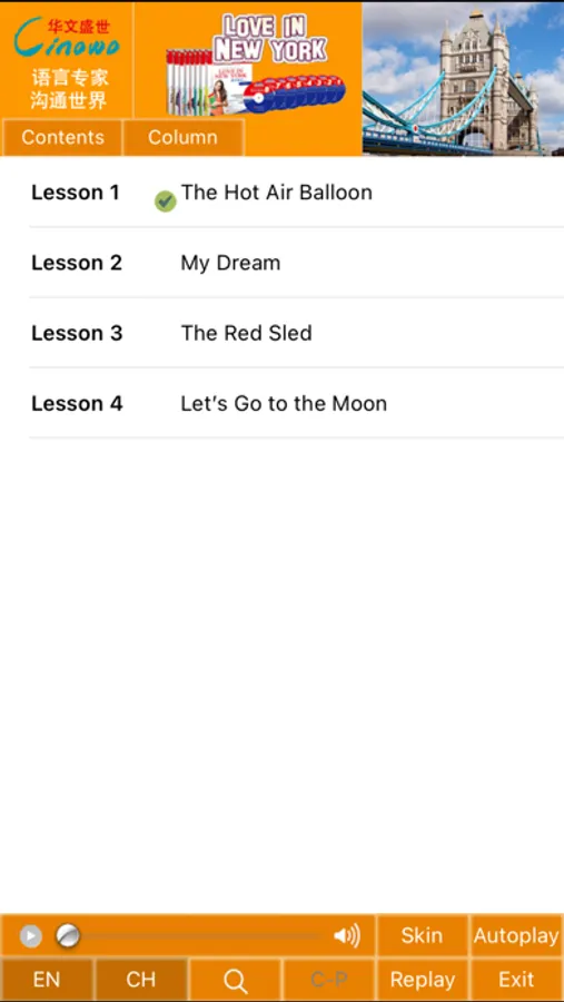 《易趣幼儿英语4B》适用于5-6岁的幼儿,包括The Hot Air Balloon, My Dream, The Red Sled, Let’s Go to the Moon四个主题故事。其中,每课包括Words(主题单词), Story(主题故事), Daily Expression( 日常用语),Doe Ray Me(哆来咪)四部分主题内容。本APP每课都配有详细的中文字幕,并配以强大的可跟读复读的播放器,课文内容轻松点读。