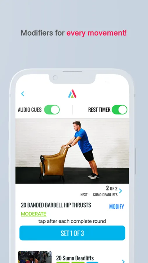 Thousands of workouts, from at-home bodyweight workouts, to yoga, classic gym workouts, cross-training workouts, and dance. One-touch modification to your ability, so every body can do it!