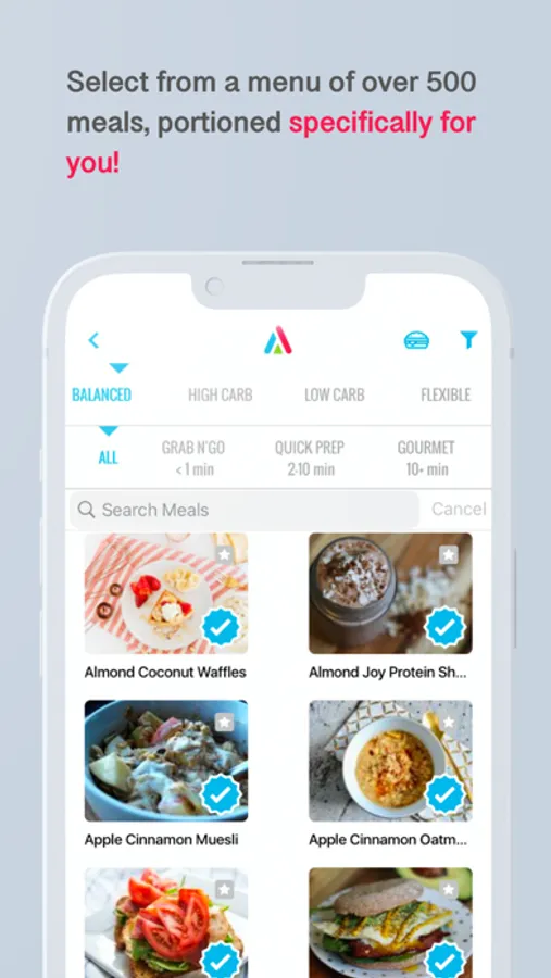 Over 600 delicious, fast, and easy custom meals, generated specifically for your goals and needs. Select your favorites in the planner, and we’ll create a custom shopping list for you. Just shop, prep and enjoy!