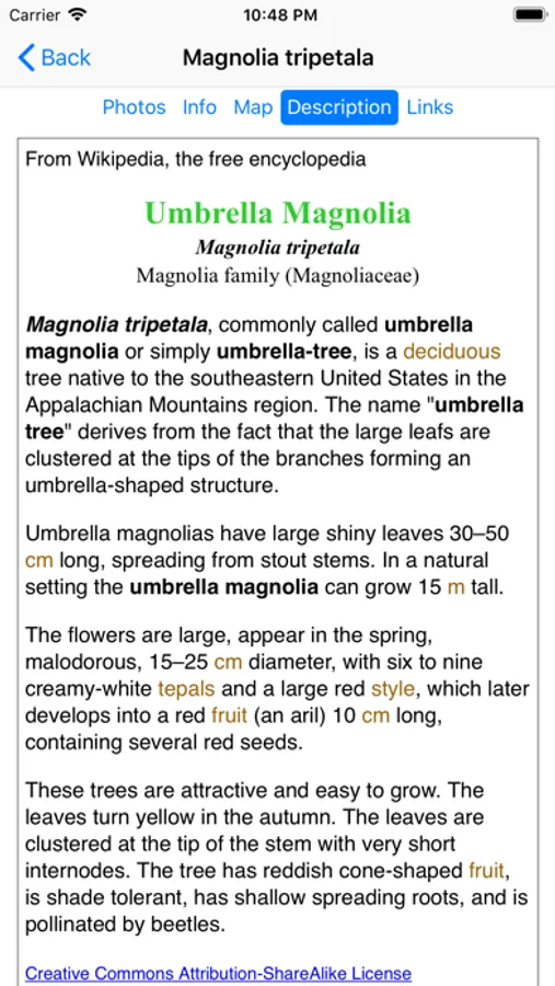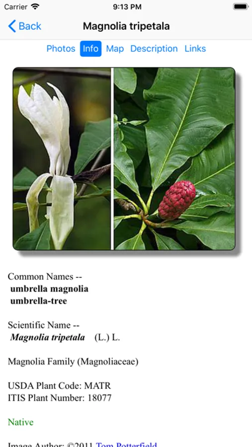 This App, which operates without an internet connection, helps find and identify plants. When you give the App information about a plant, such as its location, flower color and the time of year, the App will quickly show you which plants match your selections.