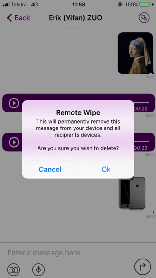 • Vanishing messages, remote wipe and a passcode protected app provide additional security options