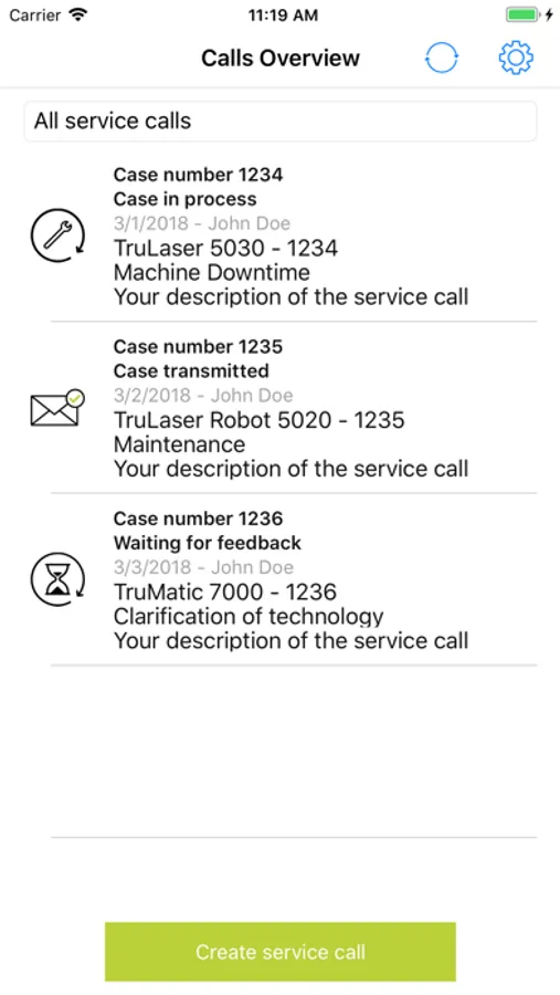 With the Service App TRUMPF now offers a practical alternative to the hotline of the Technical Service. Whether it comes to a technical problem, a spare part or a question for maintenance: in five easy steps, you create a service call. Simply select the affected machine and the message cause, add a description and photos and name a contact person for TRUMPF. Already, you can send the message around the clock to TRUMPF.