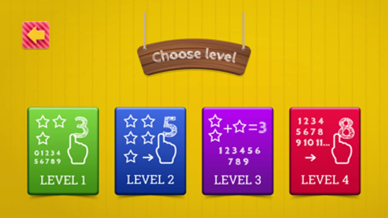 Level 1 – Lets the child practice writing, understanding, and applying numbers 0 to 9 in a logical order. This base level sets the foundation for the rest of the levels on the app.