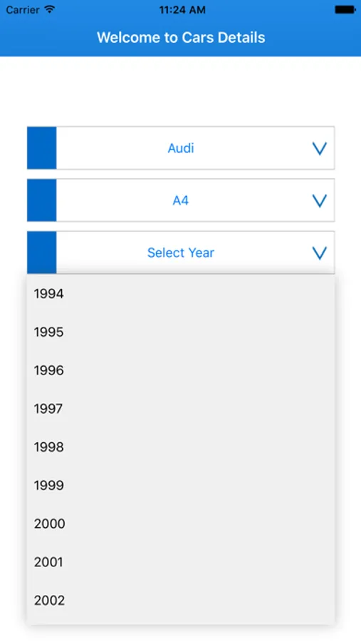 You have to just select select the make by which the car is made, then select the model of the car and finally select the year. You will get the sampling data of the selected car.