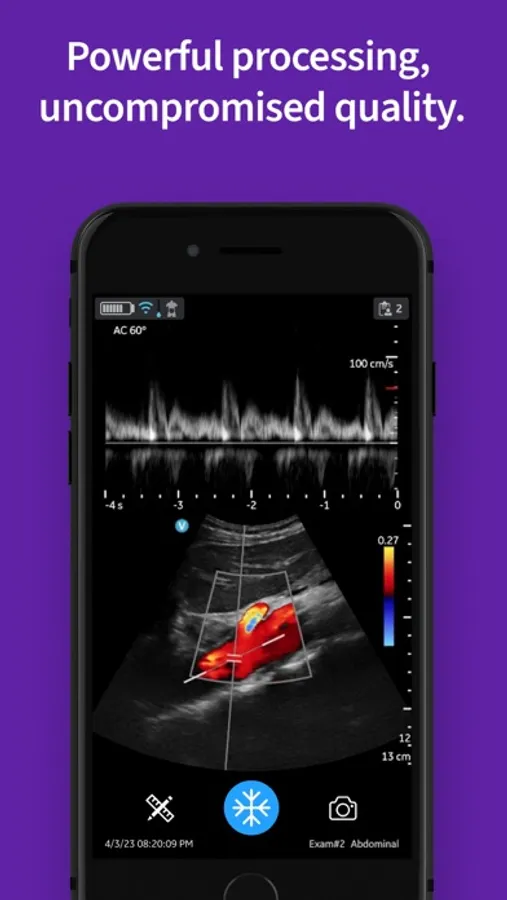 Vscan Air app users are given quick access to scanning capabilities, with user-friendly controls and functionality. The app features modes for both new and experienced users in mind including B-mode, Color Doppler, Pulsed Wave Doppler* and M-mode*. To help support your workflow the app provides intuitive measurement and annotation* tools right on your display device. In addition, the OB measurements* include the capabilities for fetal size measurements, amniotic fluid checks, angle of progression measurements, estimated fetal weight and more.