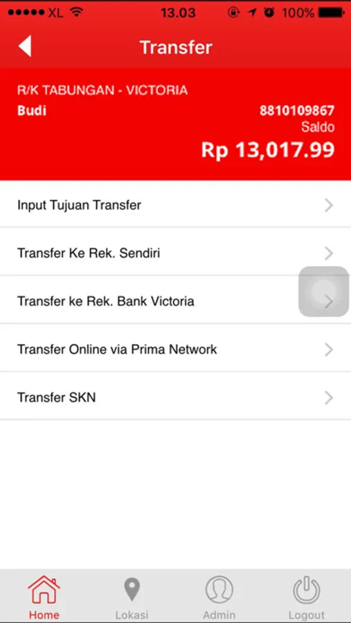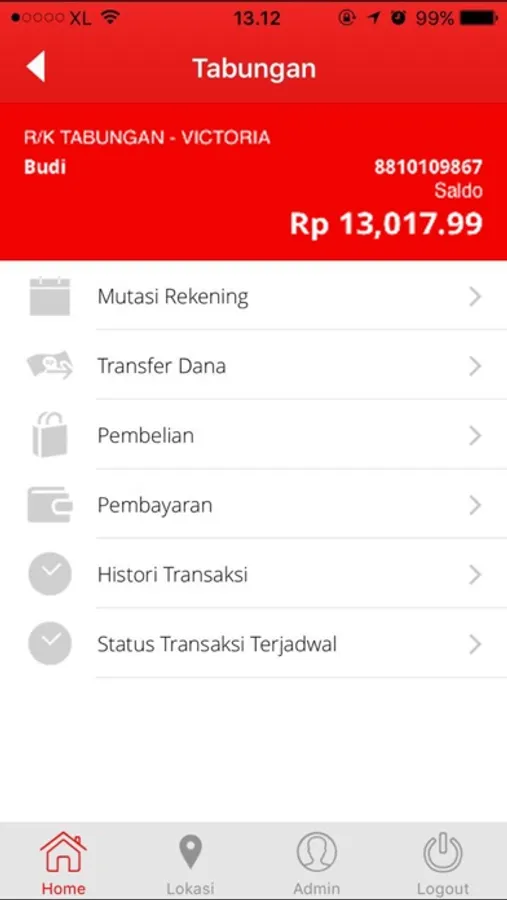 Beberapa fitur yang terdapat pada Bank Victoria Mobile Banking adalah :