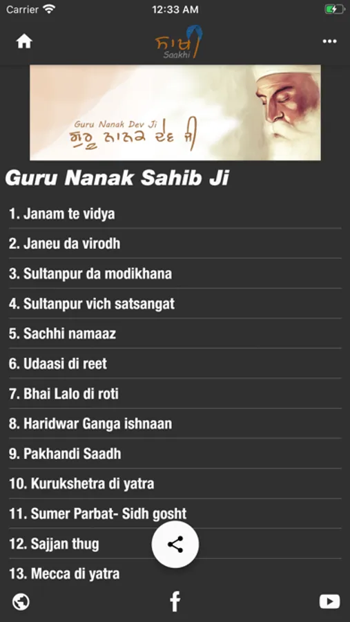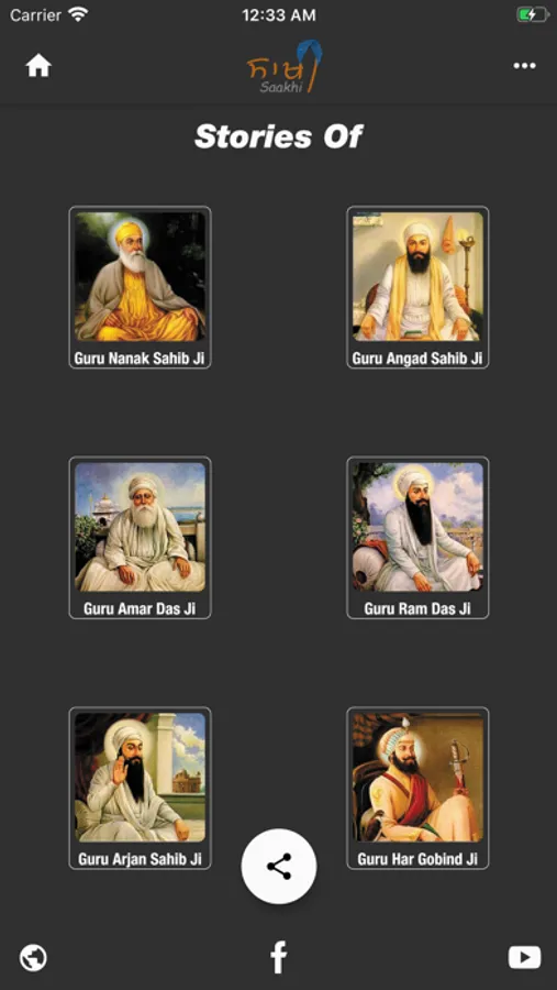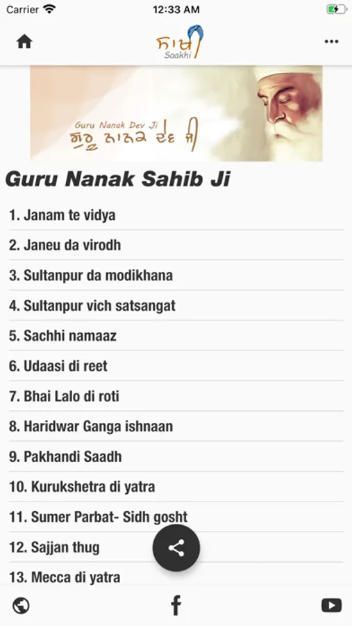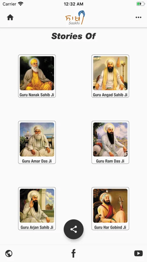 1) Short audios stories on the life history of 10 Sikh Gurus: Guru Nanak Dev ji, Guru Angad Dev ji, Guru Amar Das ji, Guru Ram Das ji, Guru Arjan Dev ji, Guru Har Gobind ji, Guru Har Rai ji, Guru Har Krishan ji, Guru Tegh Bahadur ji & Guru Gobind Singh ji.