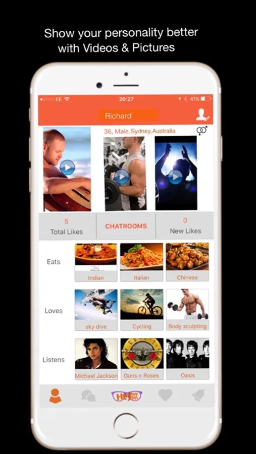 HBHG also allows you to add pictures to represent your interests in Music, Food and Activity.