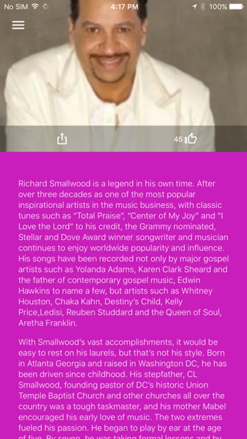 Richard Smallwood is a Stellar, Dove and Grammy Award Winner. He has over 30 years of success in the music industry.