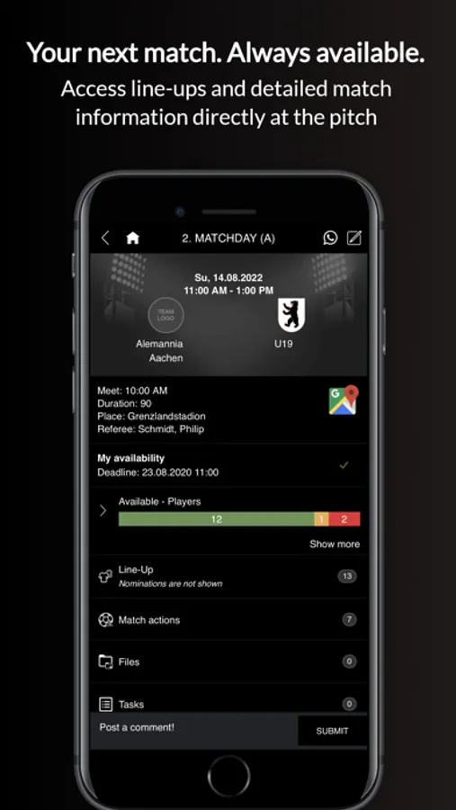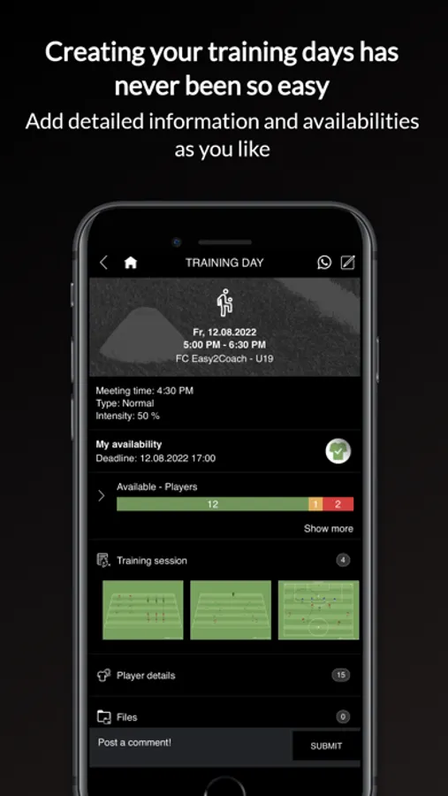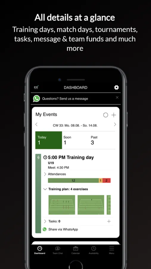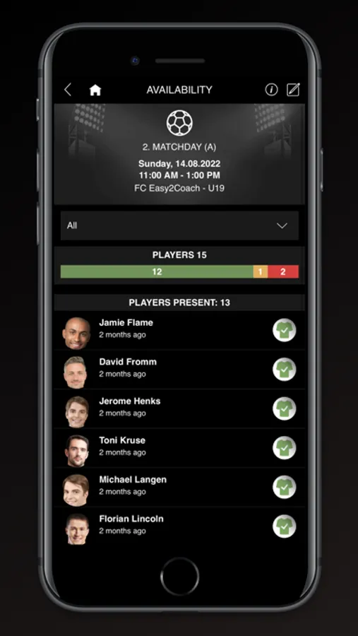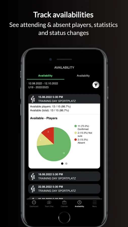 - Organize your availability lists on the go or let your players confirm their attendance at training days, games, tournaments or events. Get the overview you need to plan your next practice, game or tournament perfectly