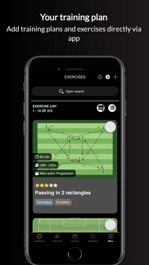 - Open the detailed training schedule with participating players, including detailed descriptions of your soccer practice and practice graphs on your smartphone or tablet