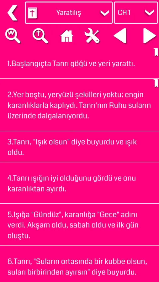 - An swape access to bookmark and back to other chapters with Turkish Bible verses.