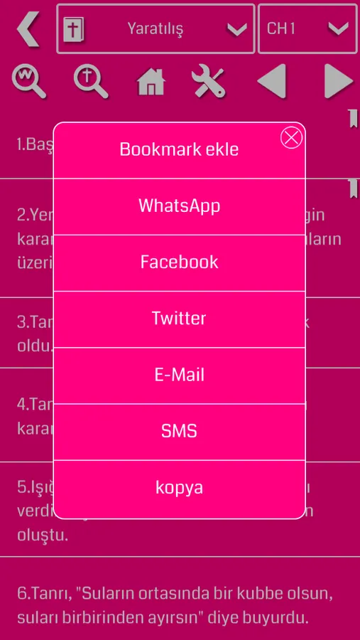 - Sharing your daily content of Turkish bible with E-Mail and SMS