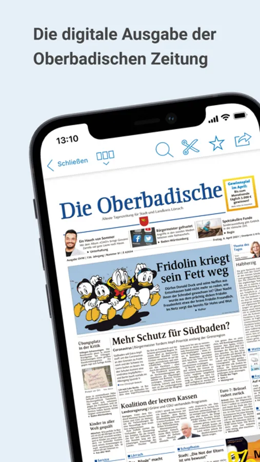 - Stufenlos Zoomen in der originalgetreuen Zeitungsansicht