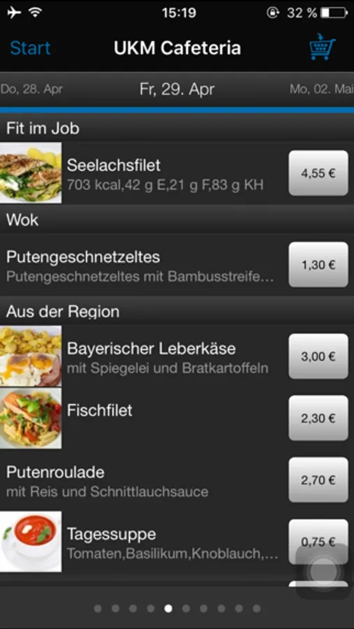 Durch den Speiseplan blättern, jederzeit und überall. Für Besucher und Patienten auch ohne Kundenkonto.