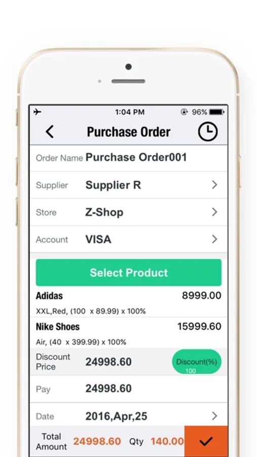 - Each order corresponds to one or more product entries and automatically calculate the amount payable orders, the amount receivable