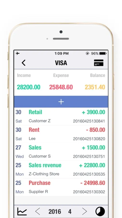 - Personal finance, not only can record expenses, income, it can also record untyped nobody knows for sure, to provide billing photographs, choose a date; clarity of the charts with monthly, yearly amount of flow management