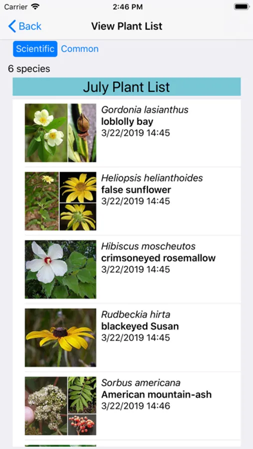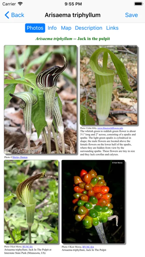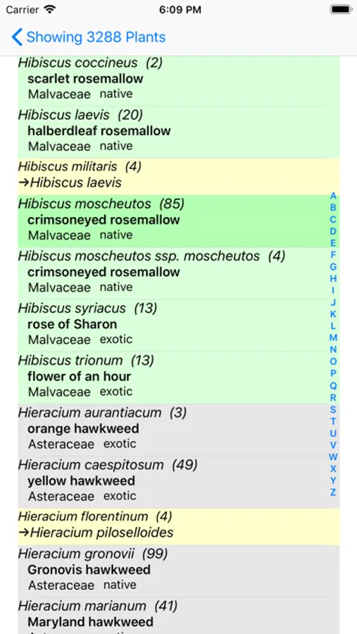 The App includes 3,838 species of plants found in North Carolina. Overall, 1,877 are "Wildflowers", 353 are shrubs, 269 are broadleaf trees, 41 are conifers, 95 are vines, 3 are cactus, 594 are grass-like, 96 are fern-like, 335 are moss-like, 37 are seaweed and 316 are lichen.