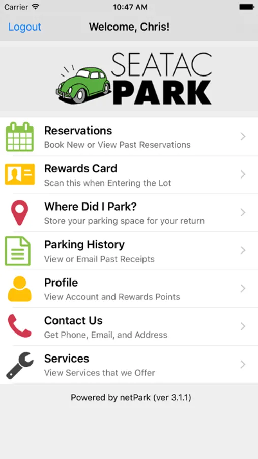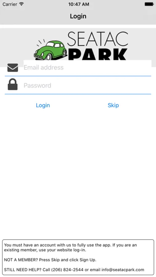 Customer portal for access to SeaTacPark located at SeaTac International Airport in Seatac, WA, providing: