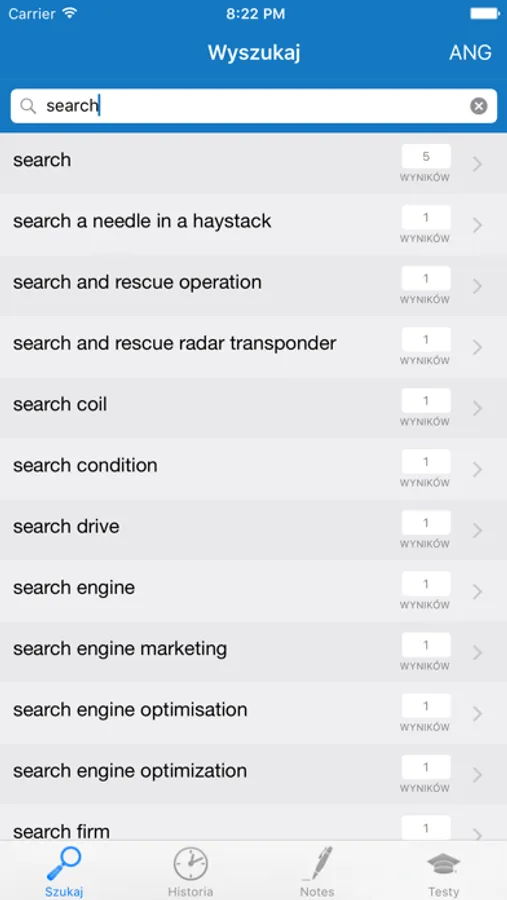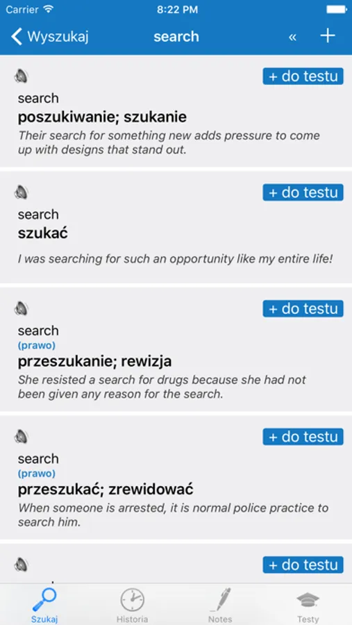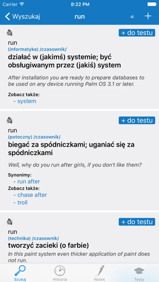 - zakładki umożliwiające oznaczenie ulubionych lub sprawiających szczególną trudność haseł,