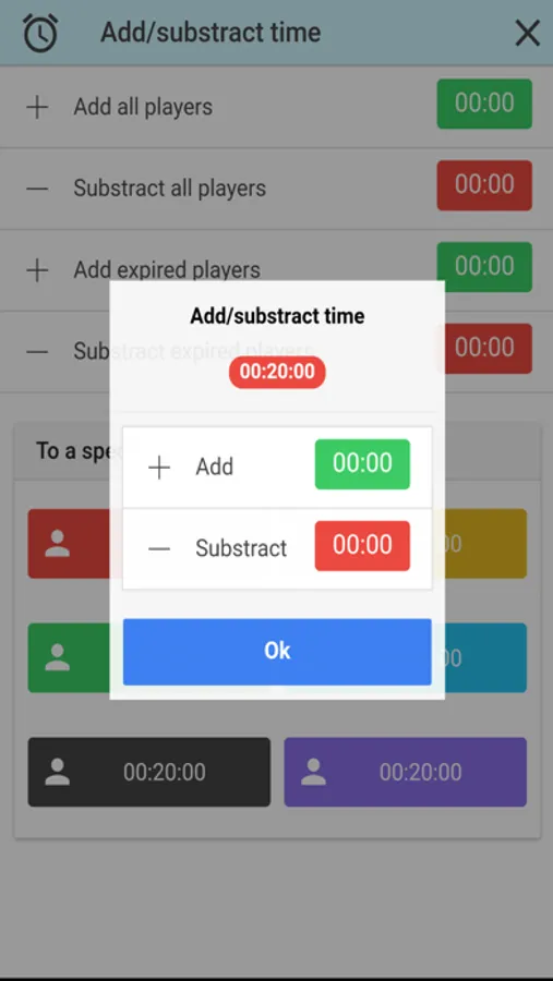 - allows to keep the screen on and to re-light the screen automatically when the time of a player has elapsed