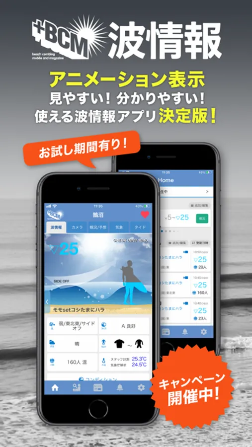 波、風向き、天候まで、分かりやすいイラストアニメーションで表示。