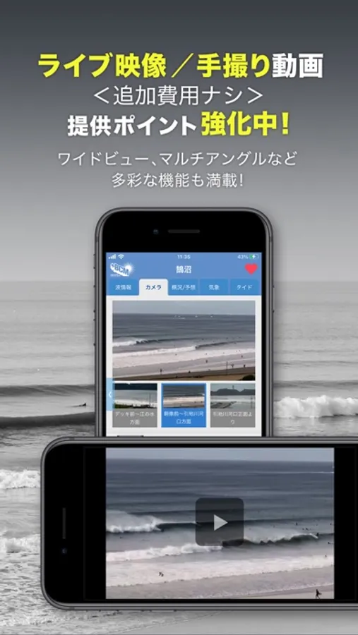 ライブ映像は閲覧制限なく全て視聴可能!他、定点動画、広範囲ワイドビュー、スタッフ撮影の手撮り動画なども充実。