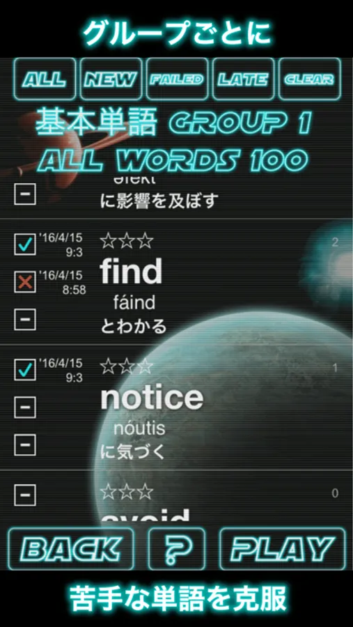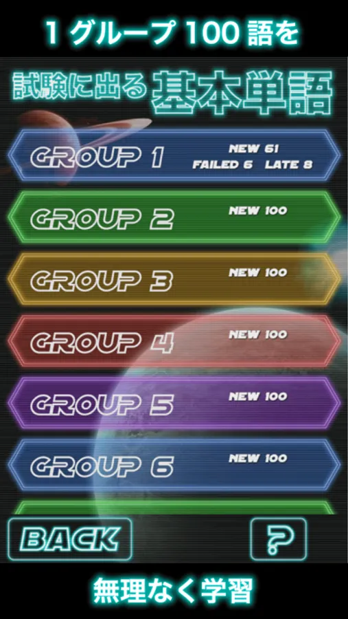 1日1ステージで大学受験英単語に必要な基本単語、重要単語、難単語の各レベルで、必要な英単語を楽しく気軽に習得できます!