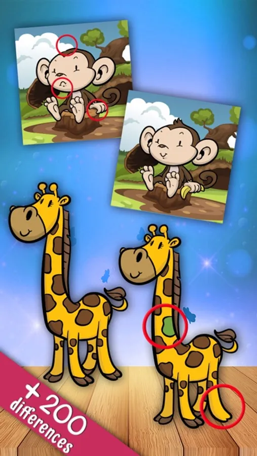 • Spot five differences between two images! This is a classic game for children and adults. This is about searching and discovering the five differences between the two captures or images. Every time you see a difference, just tap the screen. Find The Difference is a great way to exercise the brain of the young ones and improve their skills of observation! They are excellent learning games for children from 3 years old.