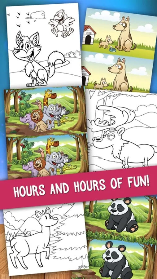 Train your mind and develop your skills of observation and color the funny pictures of animals and children. Find differences or spot the difference between pictures, also with drawings to paint and color.