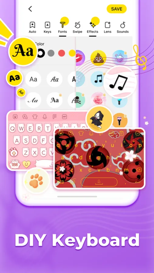- Choose keyboard buttons, tapping effects, and evenmusic all by yourself!
