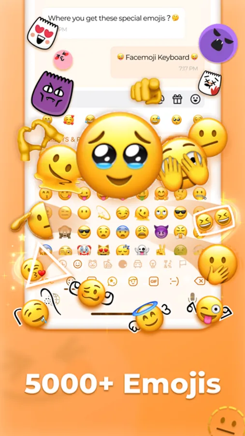 Facemoji Emoji Keyboard is a Free AI Smart ChatGBT Cool custom keyboard fonts. With 5000+ Emoji, WhatsApp Stickers, Kaomoji, GIF, Cool Fonts, TikTok Emojis, Stylish Themes on this emoji keyboard.It’s spice up your chats and posts on WhatsApp, Tiktok, Instagram, Messenger,Facebook, Snapchat, SMS, any app you're using.