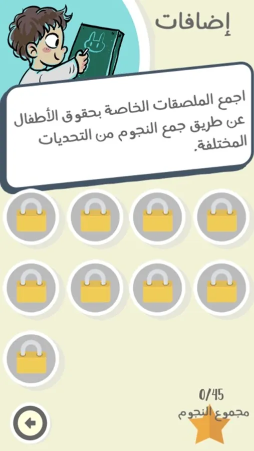 تعرف على حقوق الأطفال من خلال ثلاثة ألعاب ممتعة! أنهي التحديات و حاول الحصول على جميع النجوم لتجمع المملصقات المتحركة و معرفة المزيد عن حقوق الأطفال.