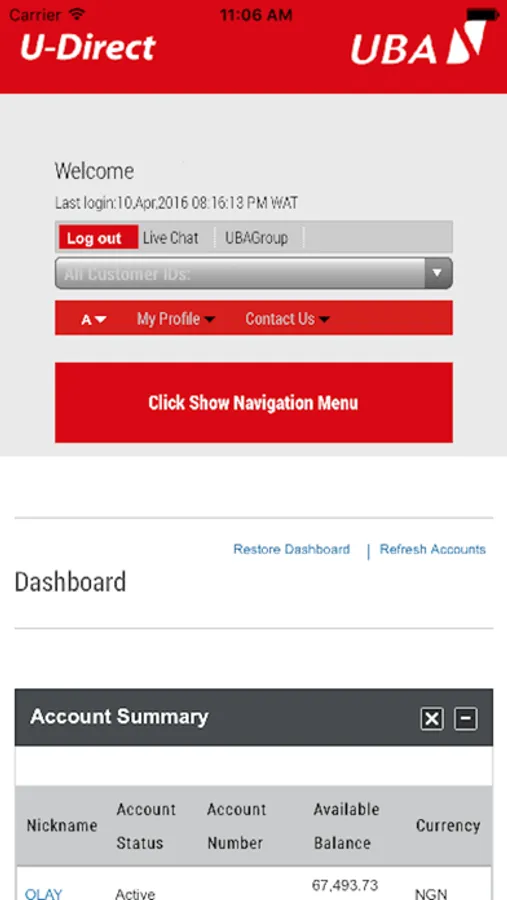 UBA Internet Banking Screenshots