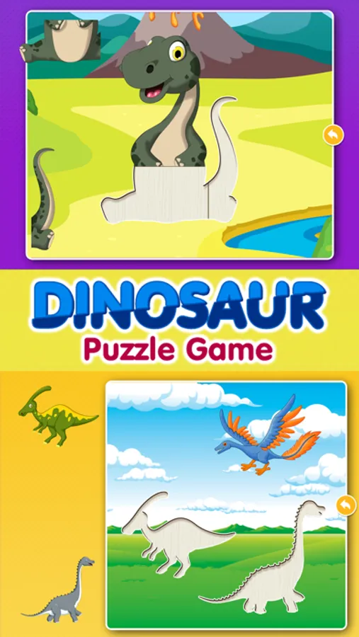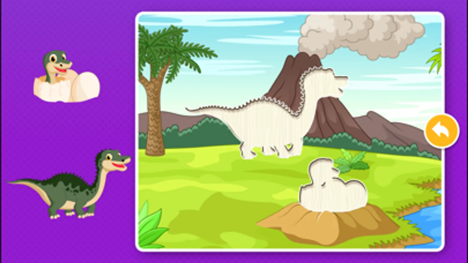 Dinosaur Puzzle Game is a cheerful educational app for children from 2 up to 3-4 years old! The application includes colorful puzzles with bright pictures of dinosaurs.