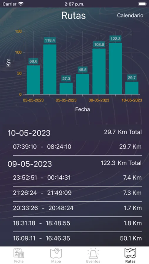 La App de Localiza.io también muestra un histórico de recorridos en un mapa, con un desglose de horarios de utilización del vehículo, un sistema de notificaciones por si el vehículo sale una zona delimitada (vallas virtuales o áreas de seguridad), niveles de eficiencia de conducción y muchas otras funcionalidades configurables para mejorar el rendimiento y la seguridad de los vehículos.