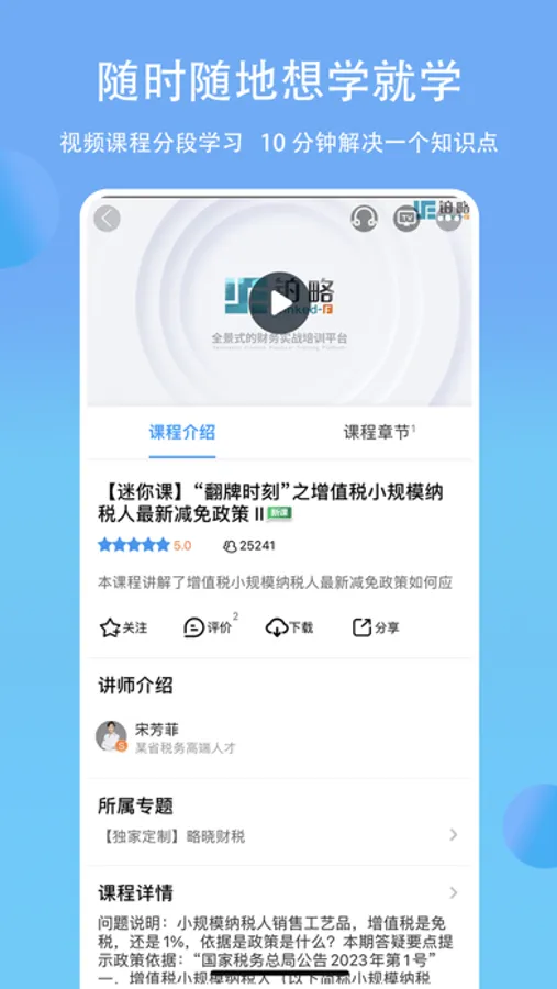 铂略财课APP是铂略财务培训专注于企业财务 税务 会计的移动学习平台。课程涵盖 财务管理、财务分析、信用管理、成本控制、税务管理等。
